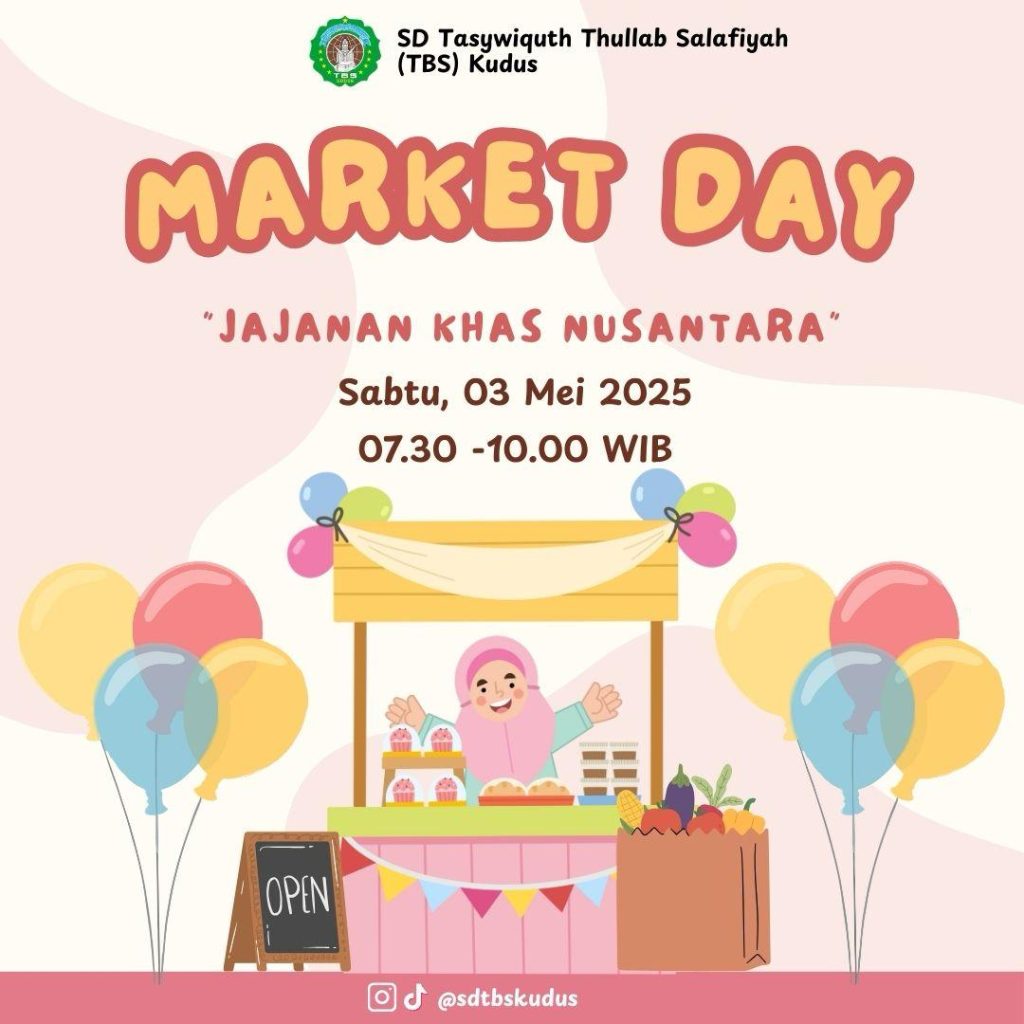 Mengusung konsep sederhana dan kekeluargaan, Market Day ini akan melibatkan partisipasi aktif dari siswi-siswi SD TBS Kudus dan para orang tua. Para siswi, dengan didampingi oleh ibu-ibu, akan menjual berbagai produk makanan ringan, minuman, dan hasil karya mereka sendiri. Suasana pasar kecil yang meriah dan penuh semangat diharapkan dapat menjadi pengalaman berharga dalam pembelajaran nyata.